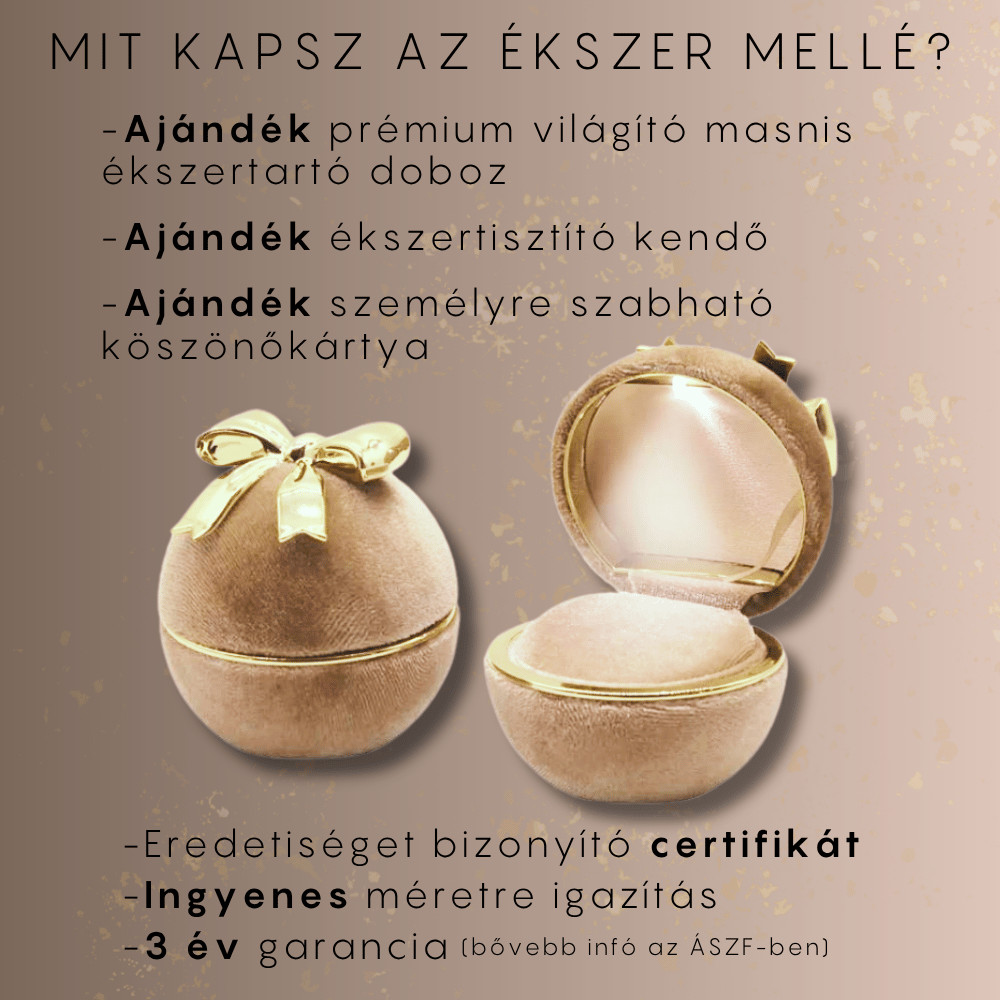 Minden ékszert gondosan becsomagolva küldünk neked, garanciával és certifikáttal (eredetigazolással) ellátva.