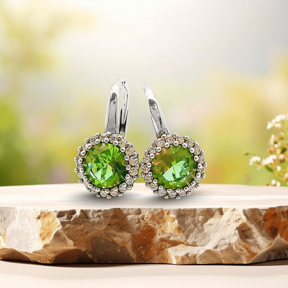Stílustipp - Ezüst fülbevaló pezsgő és zöld színváltós cirkónia kővel