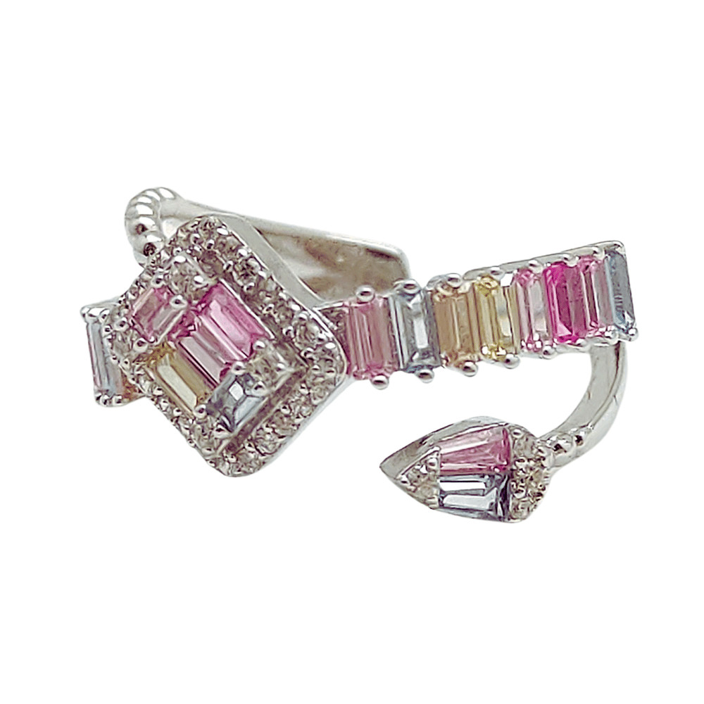 Adj egy kis színt és csillogást a megjelenésedhez az ezüst gyűrűvel, amelyet pasztell cirkónia kövek díszítenek! Ez a gyűrű tökéletes választás, ha egy kis eleganciát és játékosságot szeretnél hozzáadni a mindennapjaidhoz. A 925-ös sterling ezüst alap gyönyörűen csillog, miközben a pasztell rózsaszín, pasztell sárga és pasztel kék cirkónia kövek friss és üde hatást keltenek.