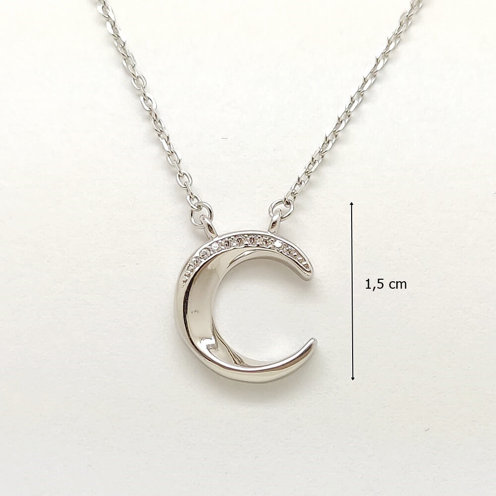 A lánc hossza 40 cm és 45 cm között könnyen állítható, így kényelmesen illeszkedik bármilyen nyakhoz. A cirkónia kövekkel kirakott Hold medál elegáns és titokzatos megjelenést kölcsönöz, amely bármilyen outfithez passzol. Viseld ezt az ezüst láncot egyedül, hogy kiemeld az egyedi stílusodat, vagy kombináld más ékszerekkel a még lenyűgözőbb hatás érdekében.