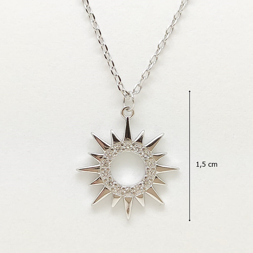A lánc hossza 42 cm és 45 cm között könnyen állítható, így bármilyen nyakhoz kényelmesen illeszkedik. A cirkónia kövekkel díszített Nap medál elegáns és ragyogó megjelenést kölcsönöz, amely bármilyen outfithez passzol. Viseld ezt az ezüst láncot egyedül, hogy kiemeld az egyedi stílusodat, vagy kombináld más ékszerekkel a még lenyűgözőbb hatás érdekében.