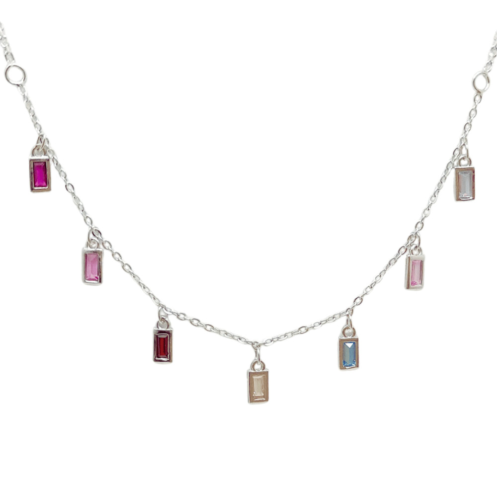 Légy stílusos és elbűvölő az ezüst nyaklánccal, amelyet színes cirkónia kövek díszítenek! Ez a nyaklánc tökéletes választás, ha egy kis eleganciát és színt szeretnél hozzáadni a megjelenésedhez.