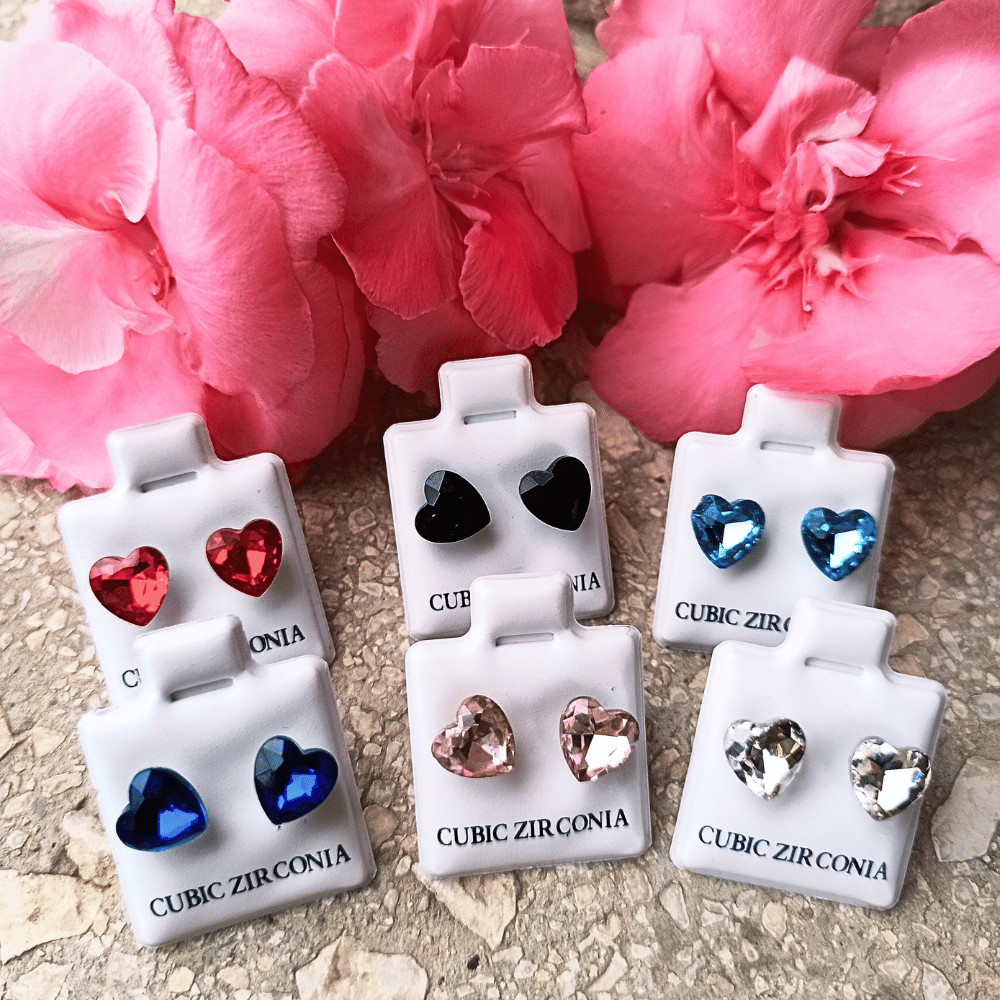 Játékos, mégis elegáns szív formájú fülbevaló 100%-ban antiallergén szilikonból (nem csak a zár, hanem a szára is), így nem okoz irritációt a legérzékenyebb füleknek sem. 8 mm átmérőjű, szív alakú cirkónia kővel, 8 különböző színben. 1 pár/csomag.