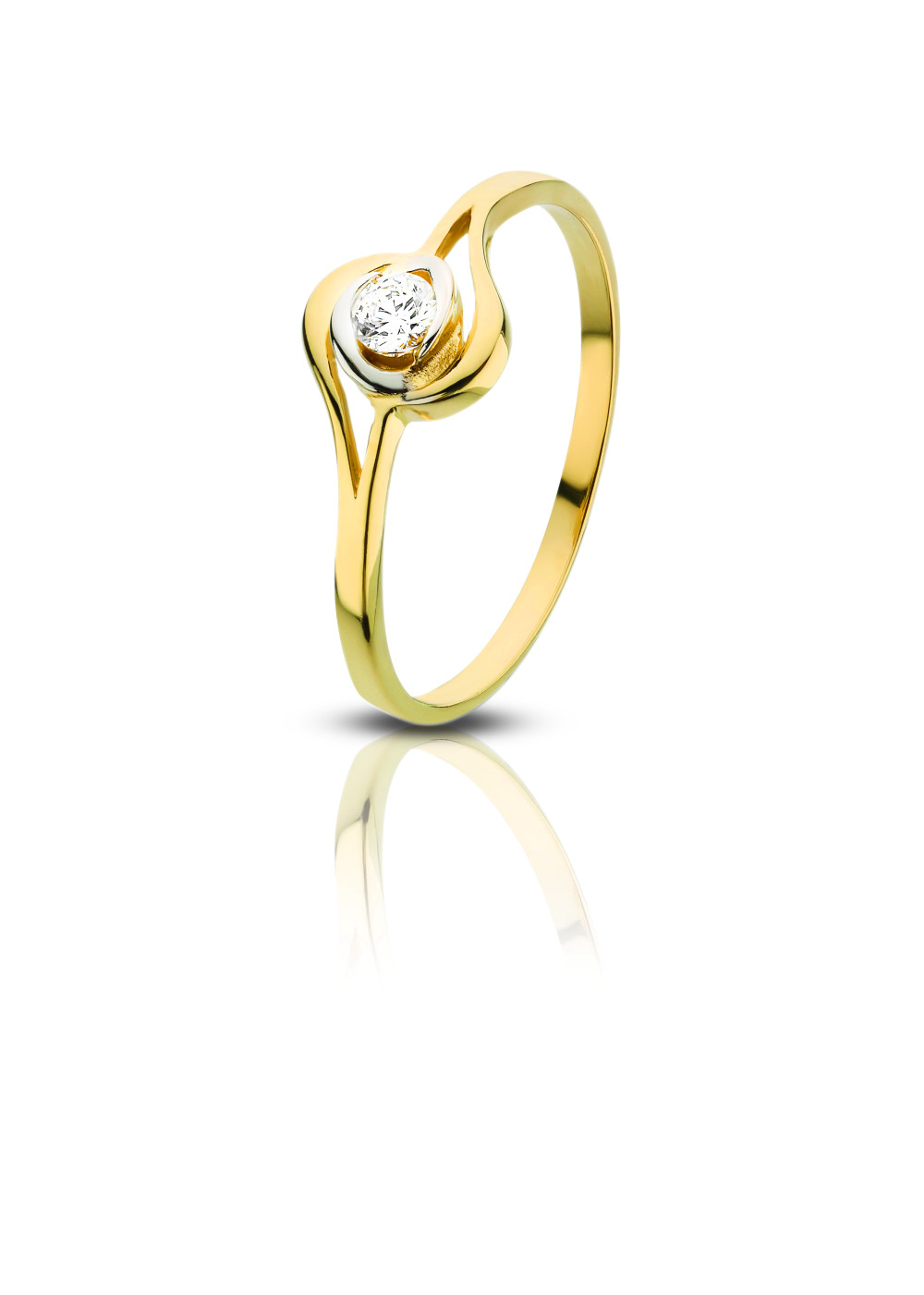 Bűbájos 14 karátos arany gyűrű egyetlen cirkónia kővel, melyet a gyűrű szárai lágyan és óvón körbeölelnek, mint egy szerelmes a párját.