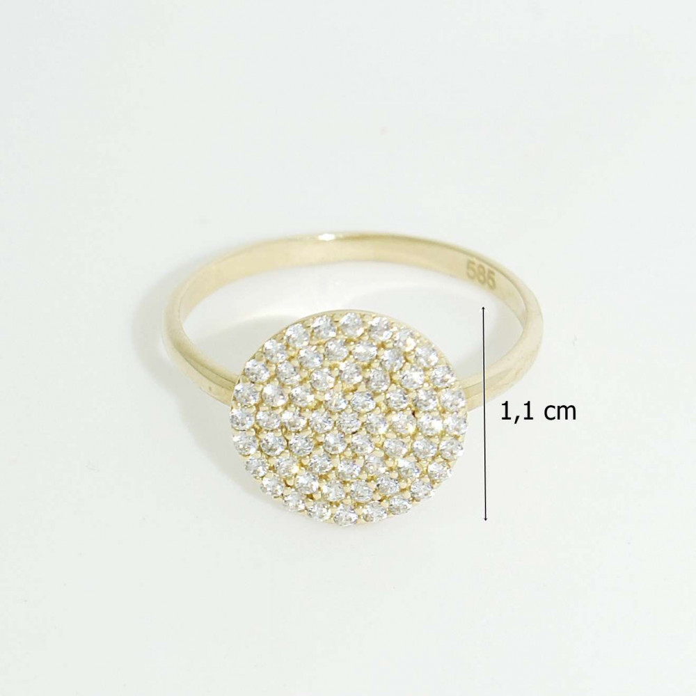 Káprázatos sárga arany gyűrű, melynek látványos fejét csillogó cirkónia kövekkel rakták ki. Akár napfényben, akár egy gyertya fényénél is ragyog az ékszer, egy alkalmi szetthez feltűnő, mégis elegáns darab.
