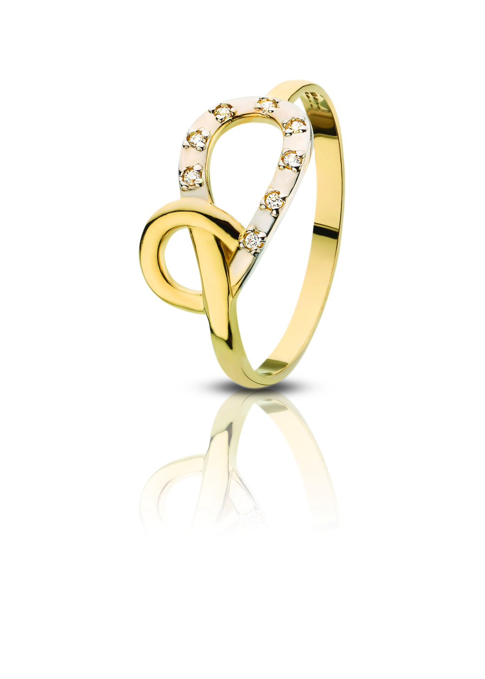 Bűbájos 14 karátos arany gyűrű a végtelen szimbólumával és csillogó cirkónia kövekkel. Ha szeretnéd a kedvesed valami különlegessel meglepni és kimutatni neki érzéseidet, válaszd ezt a gyűrűt ígéret gyűrűnek, mely stilizálva jeleníti meg a végtelen jelet, és egyúttal a köztetek lévő kötelékre is finoman utal azzal, ahogy a gyűrű szárai egymásba fonódnak.