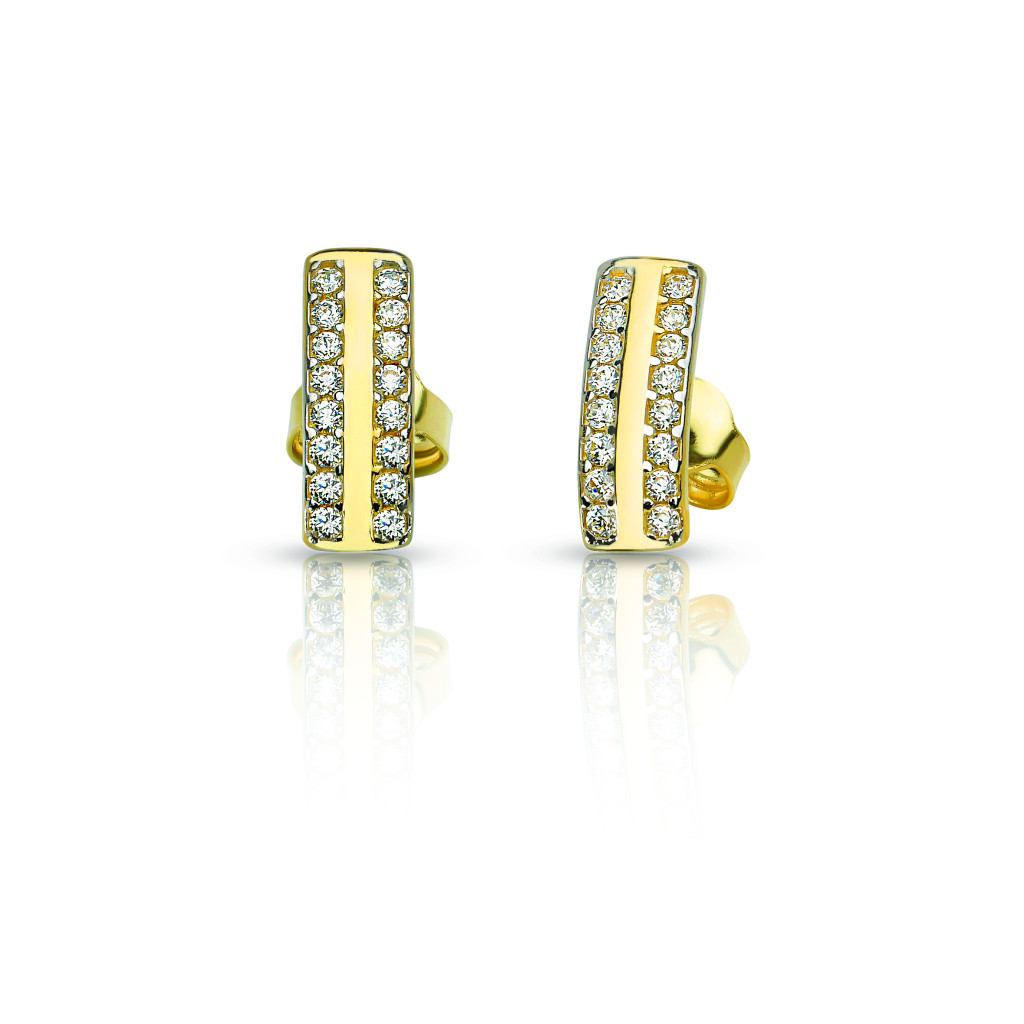 Arany téglalap fülbevaló két soros cirkónia kövekkel