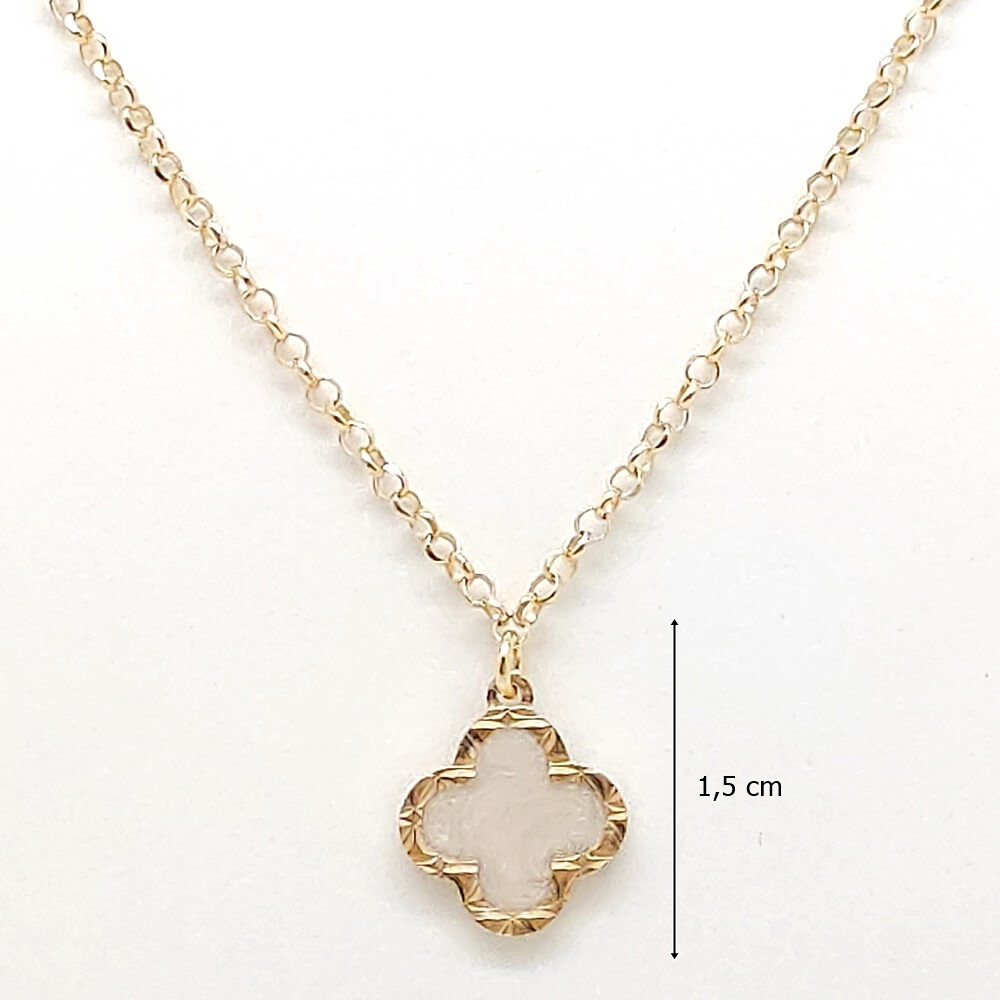 Tedd különlegessé a megjelenésed az aranyozott ezüst lánccal, amelyet egy gyöngyház négylevelű lóhere medál díszít! Ez a lánc a finom elegancia és a természetes szépség tökéletes kombinációja, miközben a gyöngyház szerencsehozó lóhere motívum lágy és nőies hatást kelt. A 925-ös sterling ezüst alap aranyozott részletekkel van ellátva, amelyek ragyogó megjelenést biztosítanak.