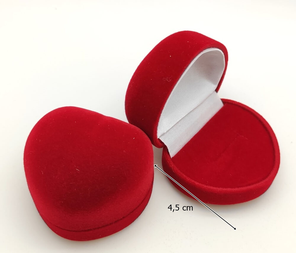 Ez az elegáns, szív alakú doboz minőségi papír anyagból készült, ami exkluzív megjelenést kölcsönöz neki, a belsejét pedig csodás piros bársonnyal bélelték, hogy a benne elhelyezett ékszer mindig biztonságban legyen és ne sérüljön.