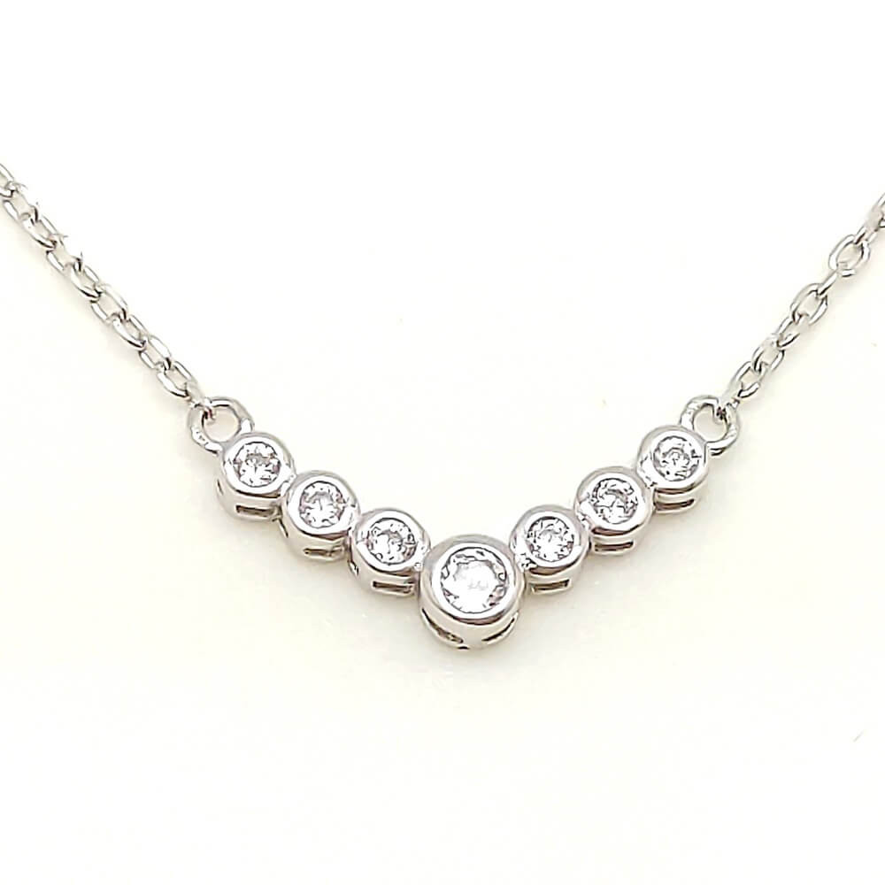 Csodásan csillogó, ródiumozott ezüst (925) collier, melyet button foglalatba helyezett 7 darab cirkónia kővel díszítettek.