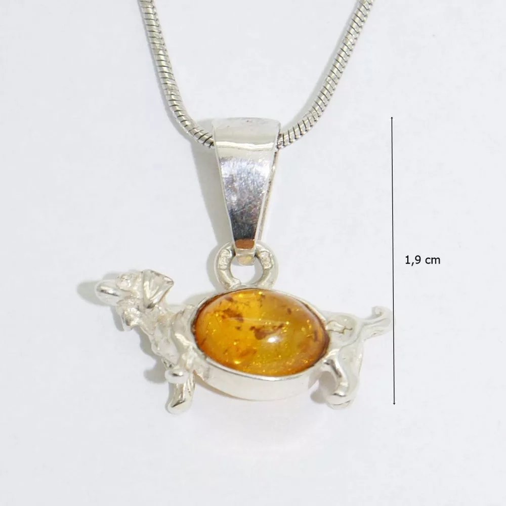 Ezüst kutyás medál borostyán tacskó