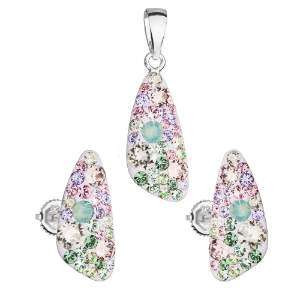 Ezüst medál és fülbevaló ékszer szett Swarovski kristállyal, pink