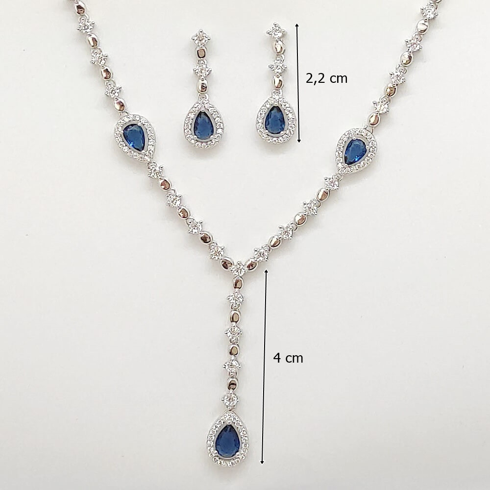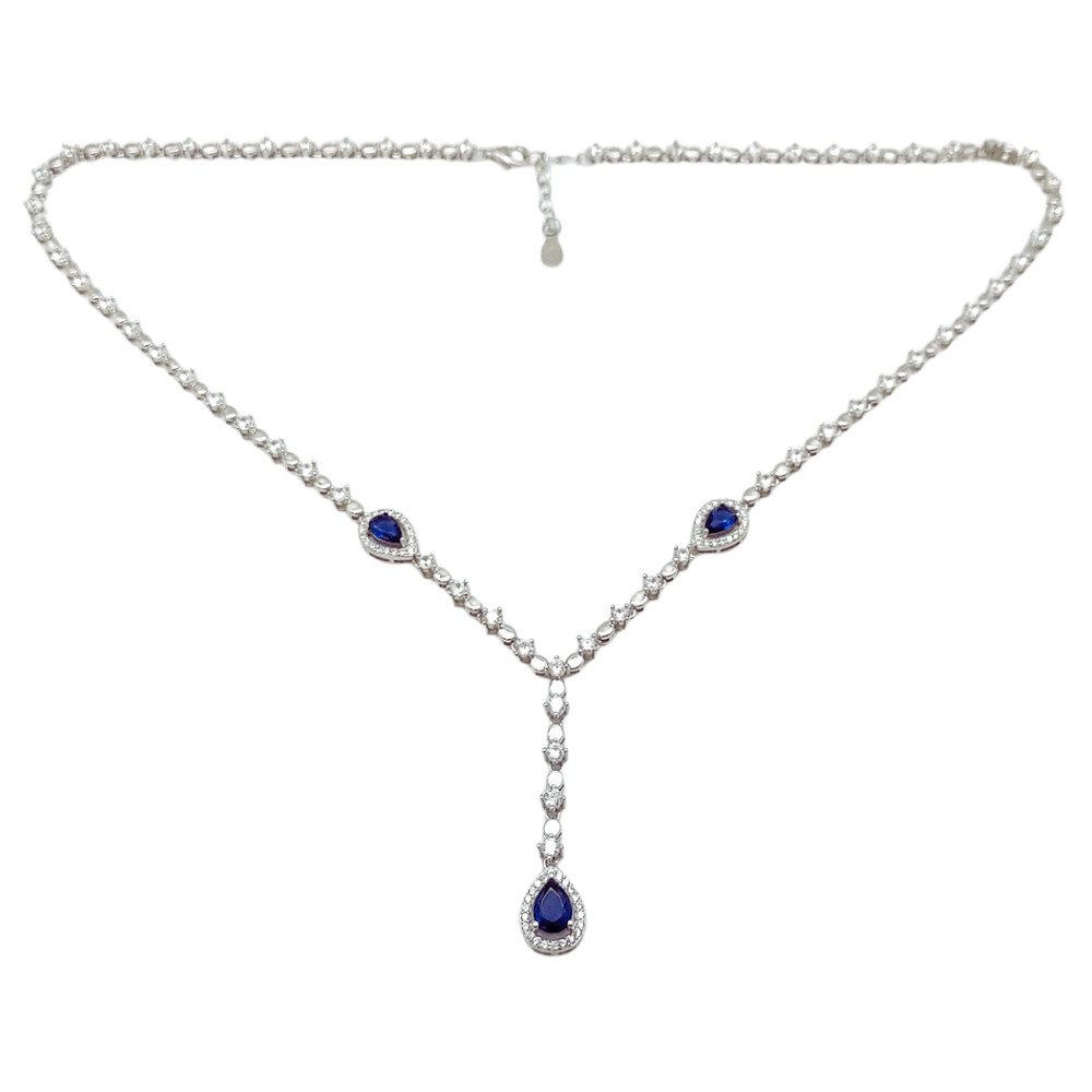 Ez az ezüst nyakék sötétkék csepp medállal egy elegáns és kifinomult ékszer, amely minden alkalomra tökéletes választás lehet. A 925-ös tisztaságú, ródiumozott Sterling ezüstből készült nyakék nemcsak tartós és ellenálló, hanem gyönyörűen csillog is. A központi elem a lenyűgöző sötétkék csepp alakú medál, amely mély színeivel és ragyogásával azonnal magára vonzza a figyelmet.