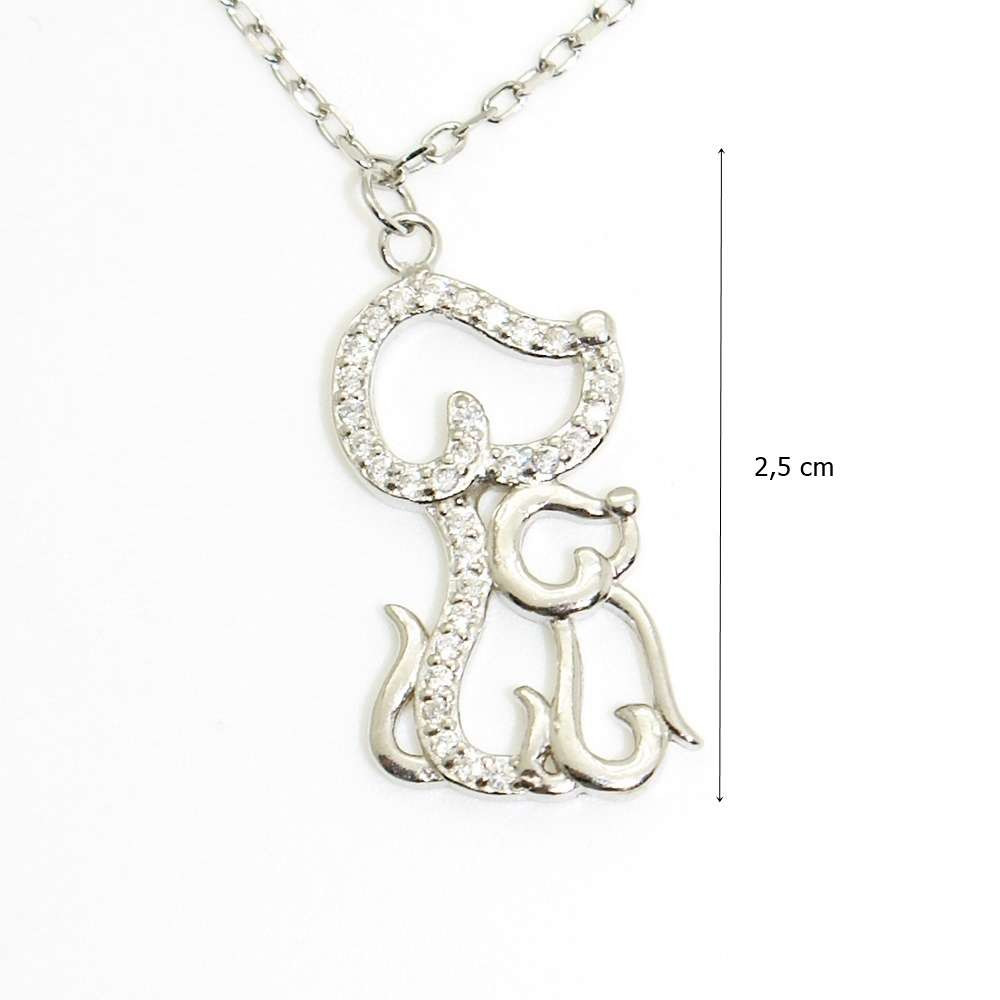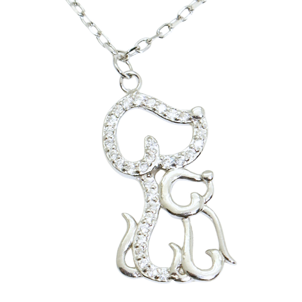 Az ezüst collier egy kedves jelenetet örökít meg, amit értelmezhetünk két kutya barátságának, vagy anya és kölyke párosának is. A két kutyafigura két különböző egyéniség: míg a kisebb szelíd és visszafogott, a nagyobbat csillogó cirkónia kövekkel díszítették, így hangsúlyozva, hogy őt bizony nem lehet figyelmen kívül hagyni. Ezt a csodás kis kutya nagy kutya ezüst medálos láncot olyan ruhákhoz érdemes viselni, amik a nyakadra terelik a figyelmet.